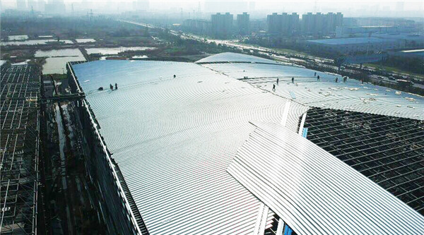 该修建屋面接纳四坡斜屋脊圆弧做法,单坡最长屋面板近90米,屋脊和檐口处标高最大高差近4米。面临极具挑战的超长屋面,威廉希尔williamhill官方网站工业修建是怎样获得金禹奖的一定呢?