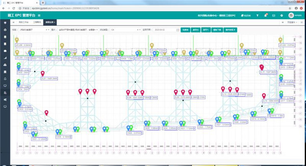 康健监测,提供工程基坑、钢结构等各区域丈量点位的数据并整理展示。通过添加检测点位和导入数据,可直观视察点位康健情形、曲线走势,并预警反响。