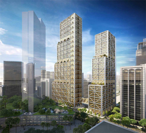 项目位于菲律宾首都马尼拉市,总修建面积约16.44万㎡,包括两栋高度划分为272m、220m的超高层办公楼及一座多层隶属楼,接纳钢框架+愚昧约束支持(BRB)系统。项目业主方系菲律宾三大银行之一BDO银行,建成后将成为马尼拉地标性修建,也将是菲律宾最高的钢结构修建。