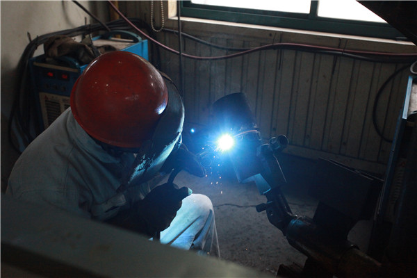 焊花里飞溅着模范的光线