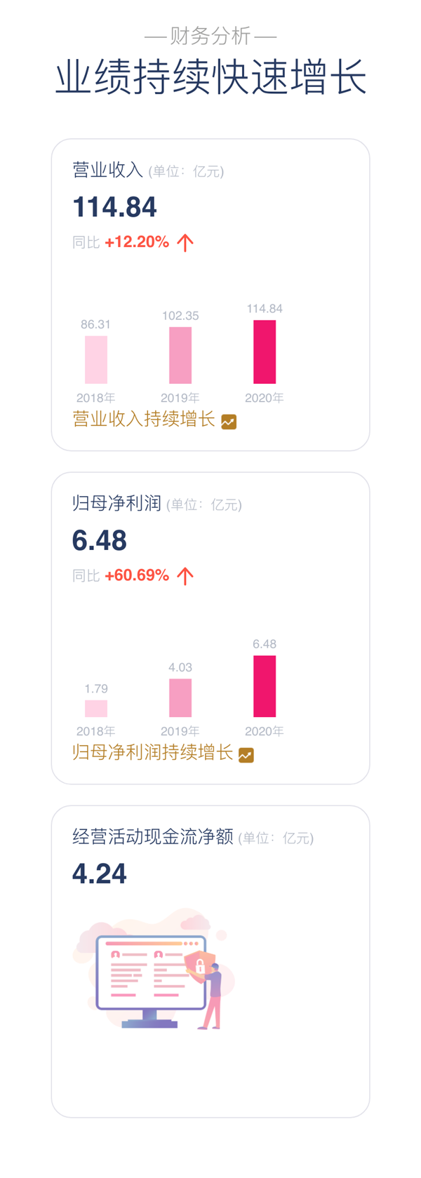 2020年,EPC及装配式营业实现快速生长,进一步提升公司盈利水平;钢结构专业分包一体化营业稳中有进,大项目、老客户比例一连提升;手艺立异效果显著,BIM手艺推广加速;加速信息化建设,提升运营效率;同时,公司顺遂完成10亿元的非果真刊行股票事情,为公司新营业快速扩张提供资笔弃力。