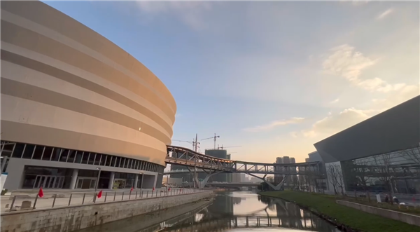 其中,“多层框架上盖大跨屋面逆作手艺”运用于屋面桁架整体提升,为后续工序提早周全铺开提供了名贵的时间;运用海内首创的“单斜杆悬索手艺”制作的河上连桥,将项目各区块自然毗连,单跨奔腾通航河流,泛起刚柔并济的视觉效果。