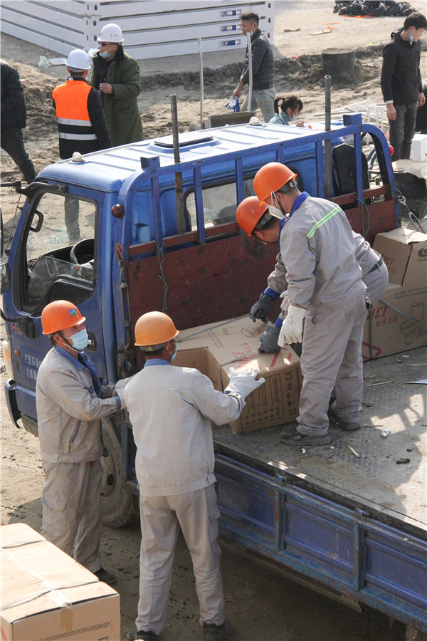 威廉希尔williamhill官方网站绍兴地区的威廉希尔williamhill官方网站工业基地、柯桥生产基地、袍江生产基地、威廉希尔williamhill官方网站绿筑基地、诺派基地、金刚幕墙基地等纷纷派出施工装置职员、行政后勤职员和自愿者赶赴现场加入战疫,项目现场日均作业职员达1500人,最岑岭时达2500人。各小组分工明确、有条不紊地开展事情;所有职员和机械开足马力,一直刷新威廉希尔williamhill官方网站速率,为助力绍兴打赢这场疫情防护战、杀绝战筑牢“钢铁城墙”。